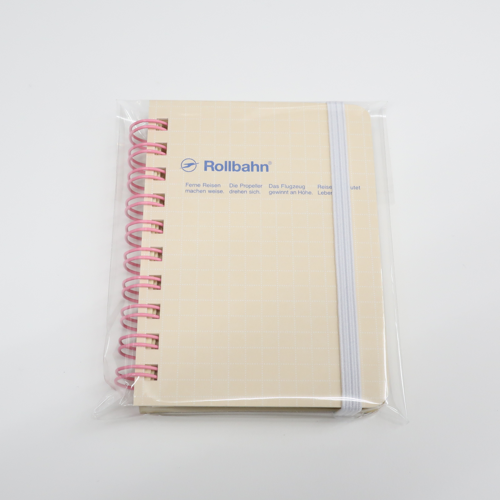 ライトイエロー、ベビーピンク、ライトブルー、ライトグリーンの全4色。ロルバーンのメモページと同じ5mm方眼を表紙に配しています。ゴムバンドは全色ホワイト。リングは、ライトイエローにはピンク、ベビーピンクにはグレー、ライトブルーにはイエロー、ライトグリーンにはブルーを合わせています。ロゴやリングのカラフルな配色がポイントです。爽やかなパステルカラーをベースに、どこか懐かしさも感じるカラーリングに仕上げました。