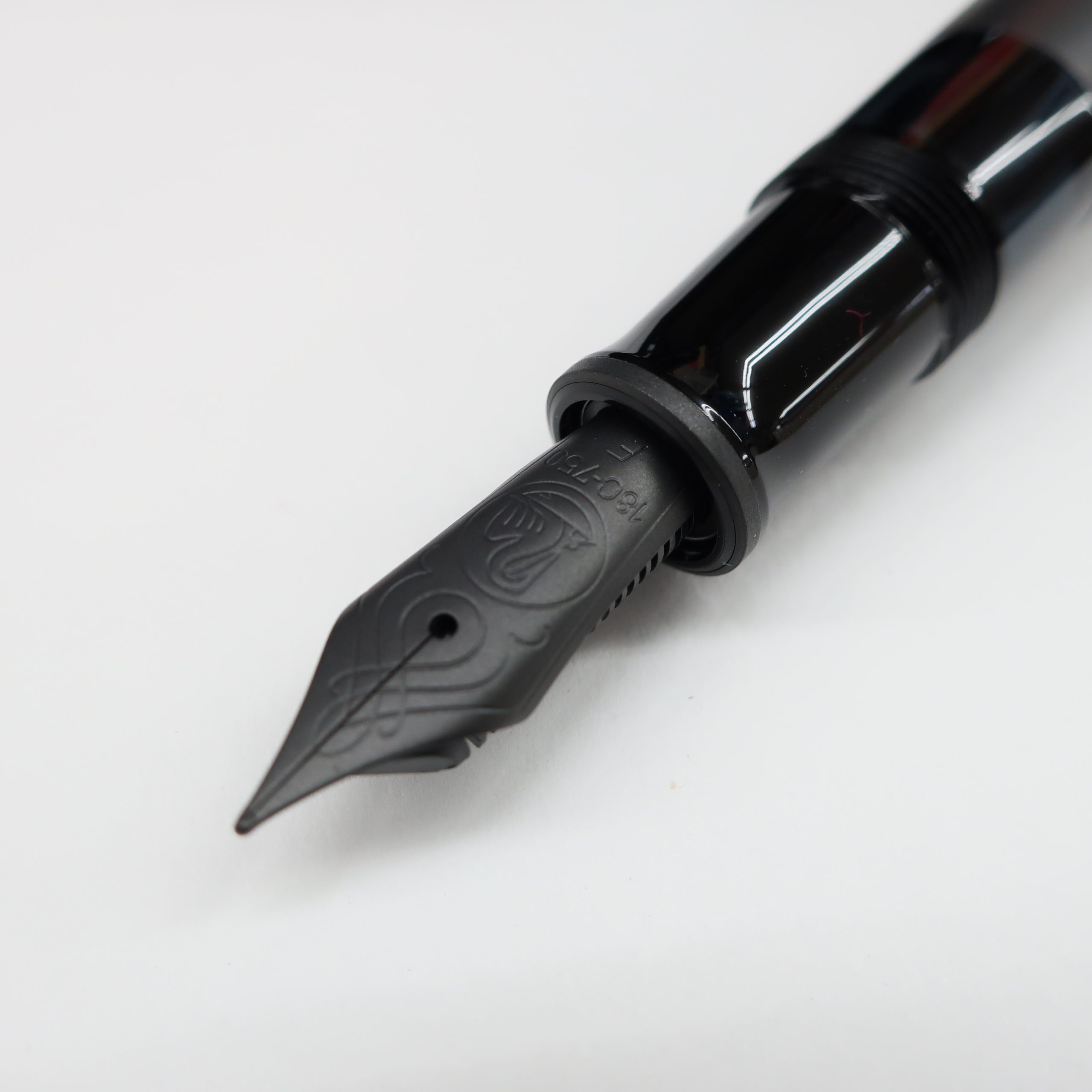 胴軸は、触感のコントラストを巧みに表現。 柔らかなマットレジンと繊細な質感が手の中でリズムを生み、触れるたびに集中力を高めてくれます。 さりげなく設けられたスモーク仕上げのインク窓は、デザインに溶け込むように配置され、ペン全体のモノクロームな美しさを損なうことなく機能性を保ちます。