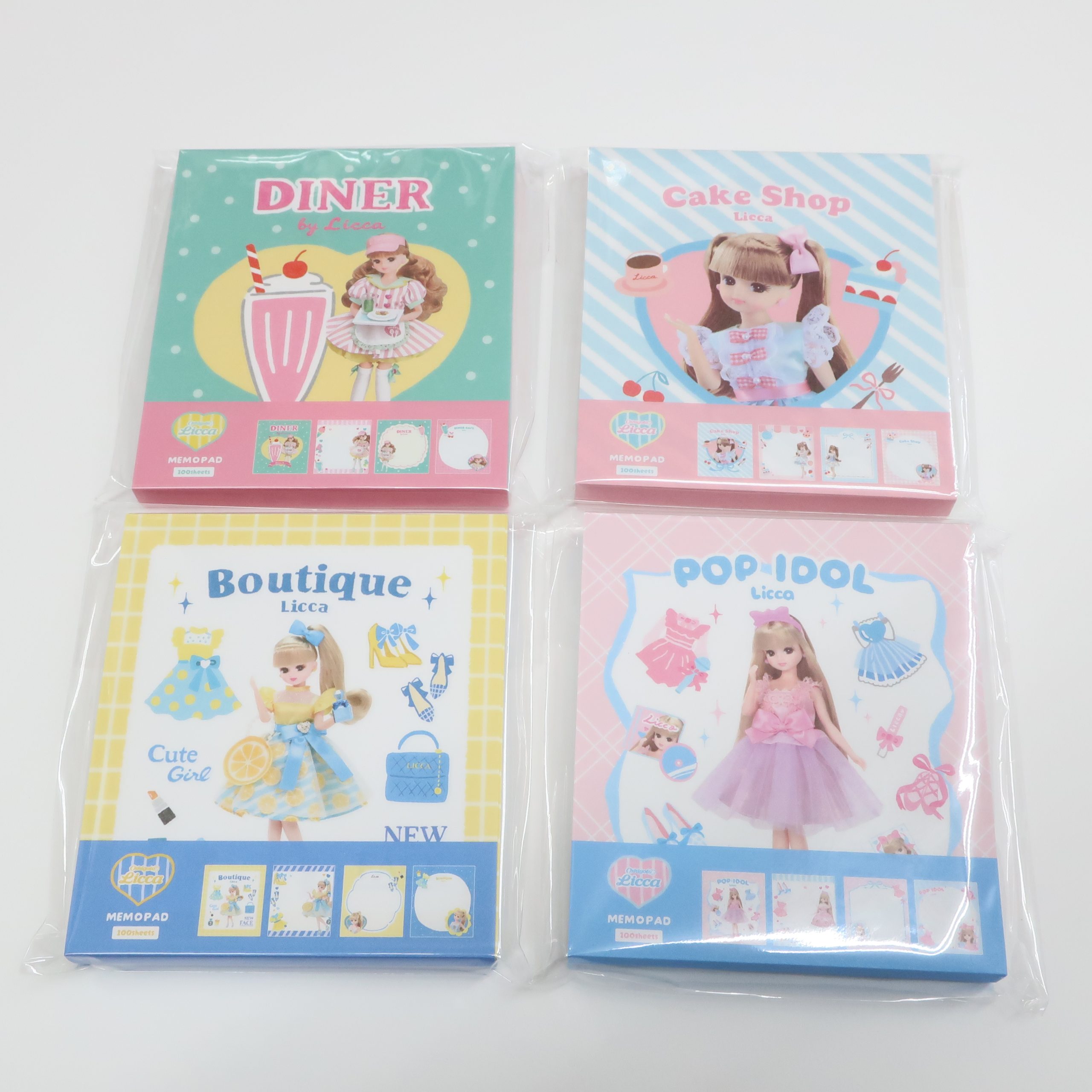 「ダイナーカフェ」「ケーキショップ」「ブティック」「アイドル」ではたらくリカちゃんが様々な紙文具や雑貨になって登場です。